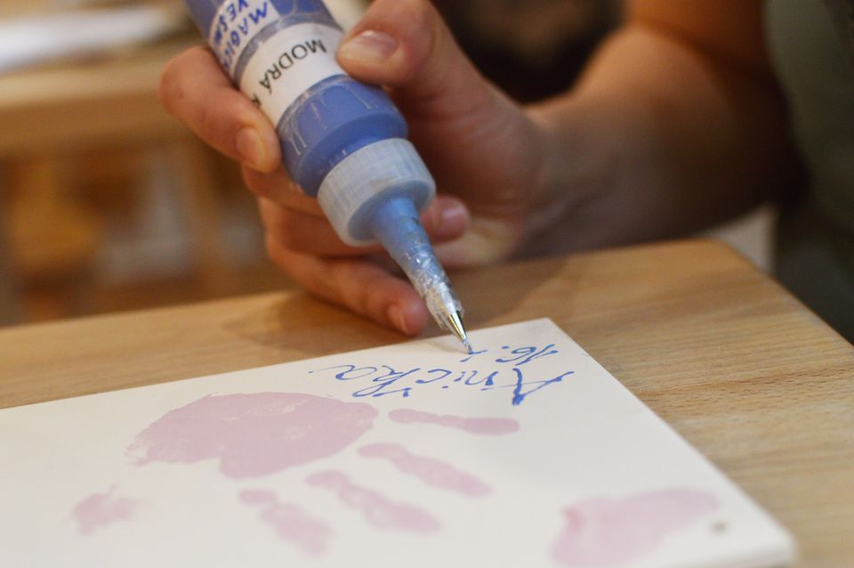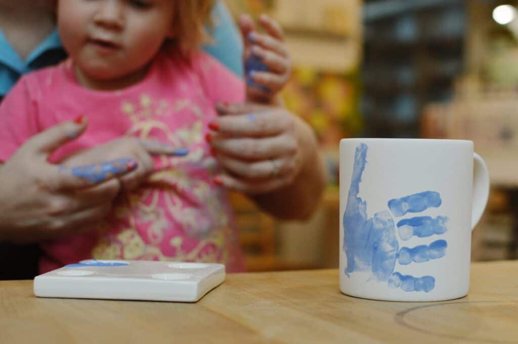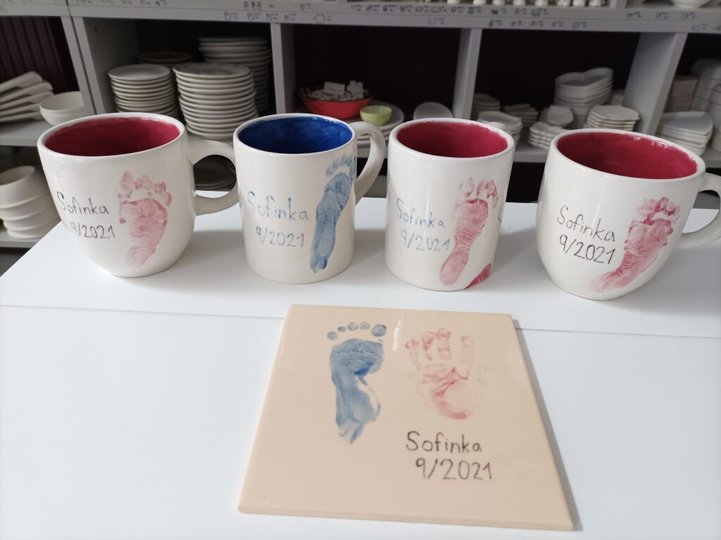 Dítěti potřeme barvou ruku/nohu a obtiskneme ji na vybraný keramický výrobek. Použité barvy jsou zdravotně atestované a absolutně nezávadné.